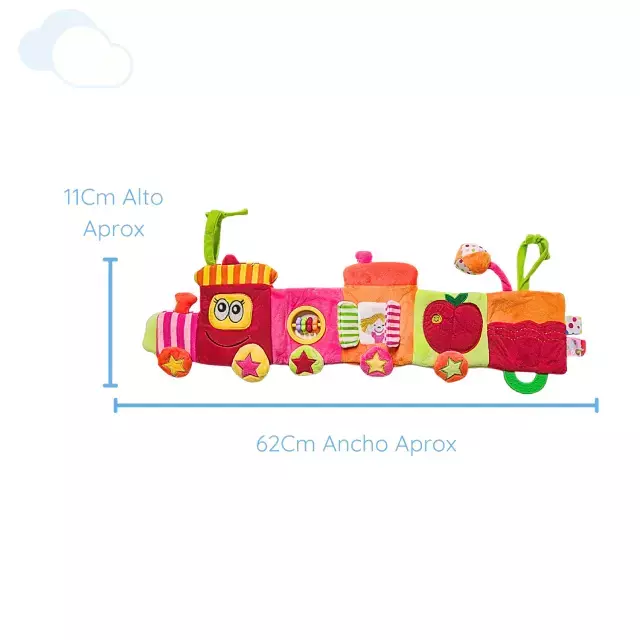 Fabricado con materiales seguros, libres de BPA, es perfecto para acompañar a tu hijo en sus primeros meses. Además, su diseño en forma de trencito aporta un toque de ternura y entretenimiento.