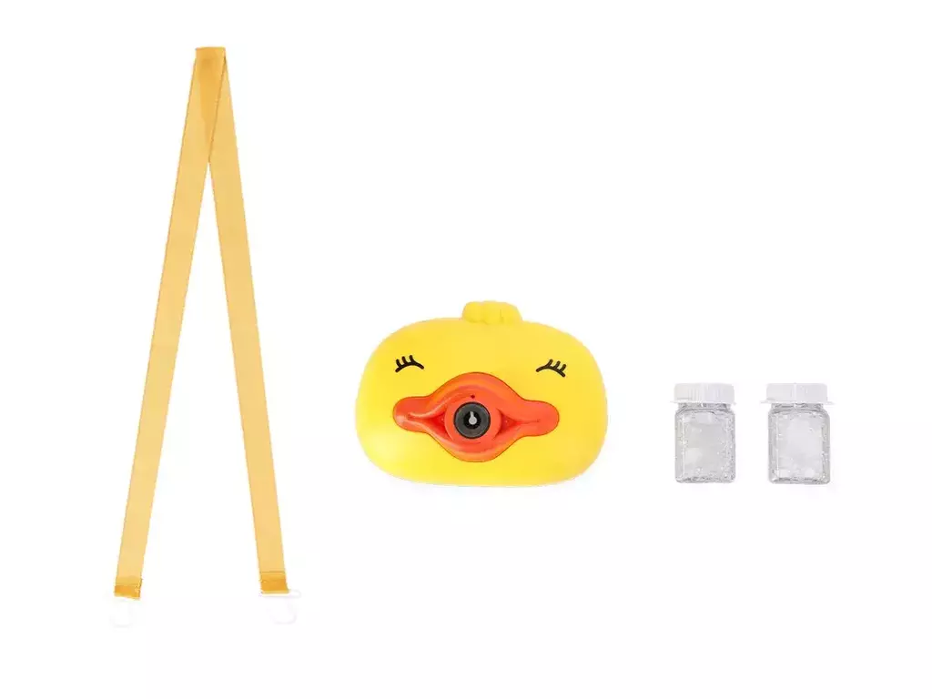 Incluye: 1 máquina de burbujas, 1 solución de burbujas de 35ml y 1 correa.