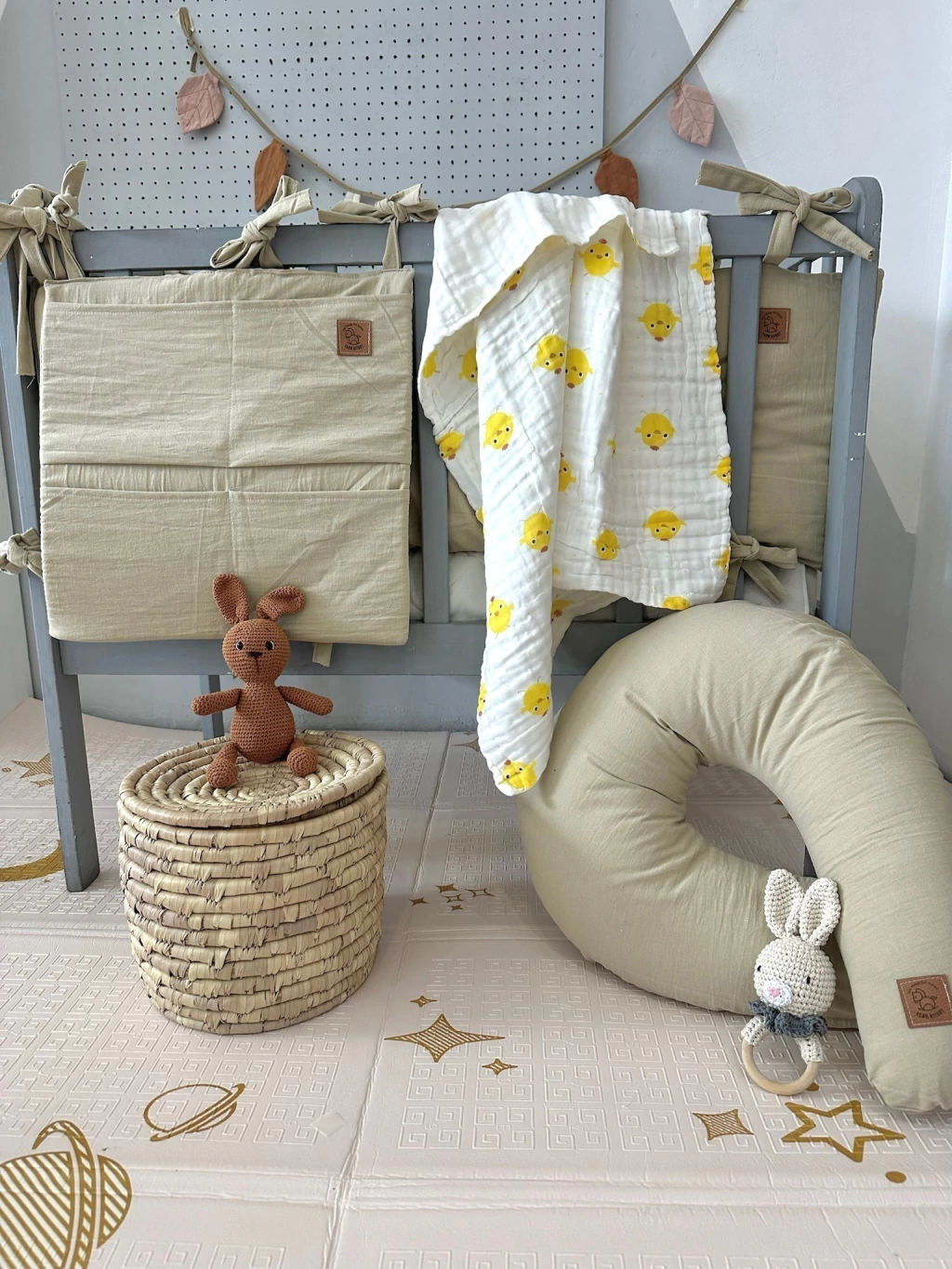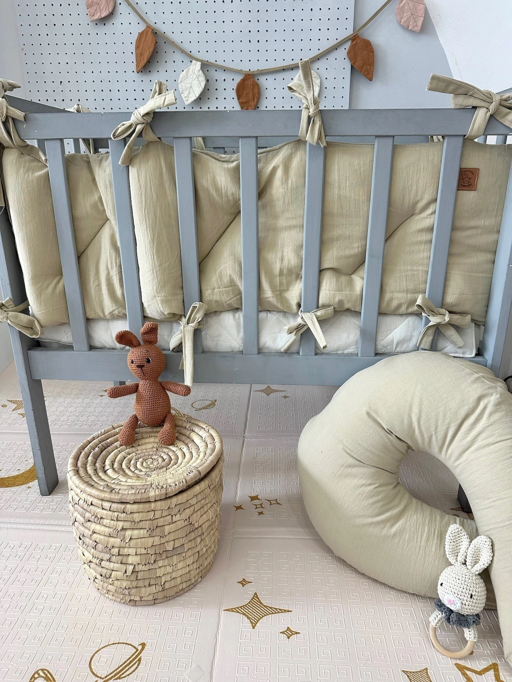Protégete y cuida a tu bebé con nuestra chichonera de tusor 100% algodón, ideal para colocar en la cabecera y los laterales de cunas con barrales. Con una altura de 35 cm, se adapta a las medidas de diferentes cunas: