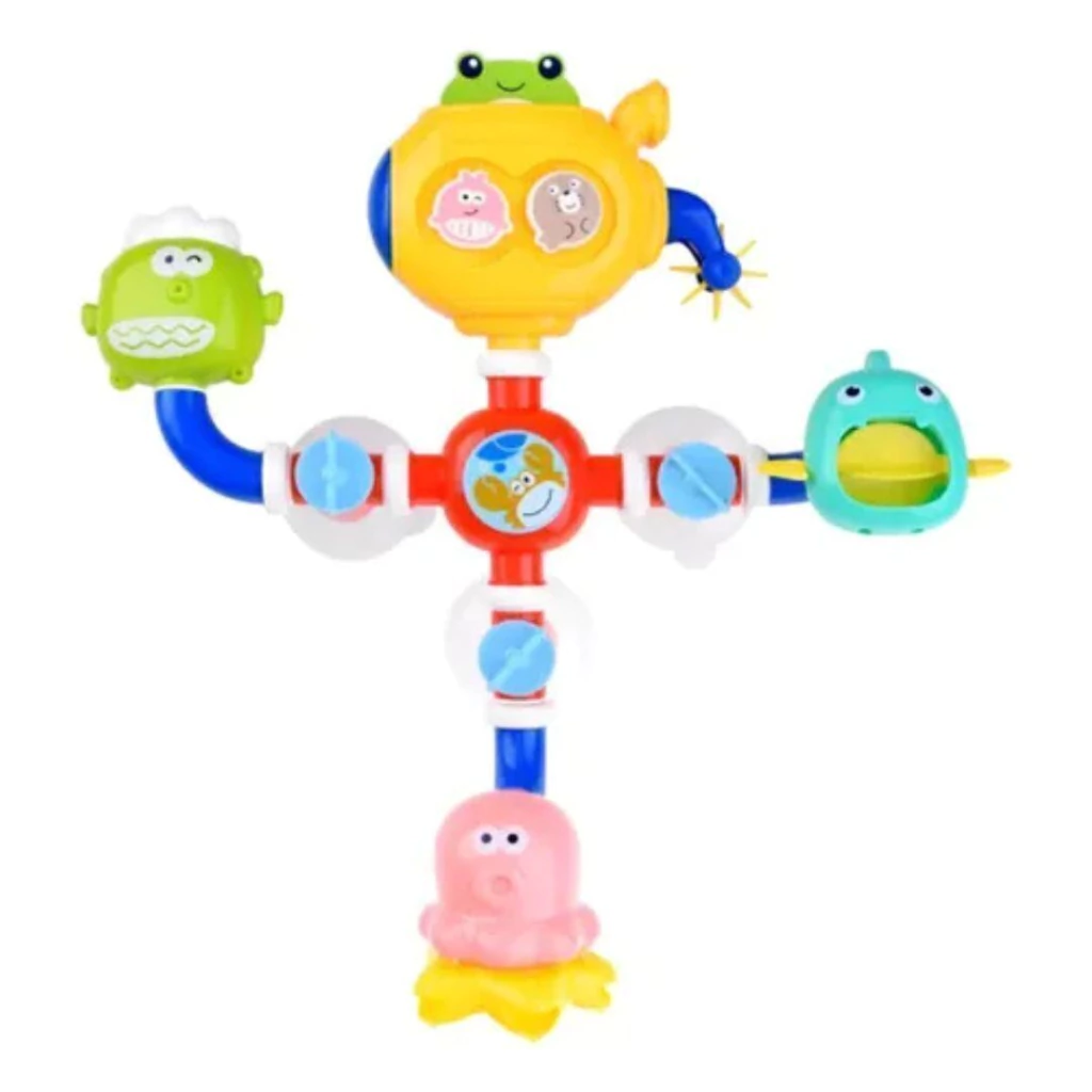 Juguete para utilizar en el baño o la pileta. Trae varias piezas que se combinan entre sí para jugar con agua