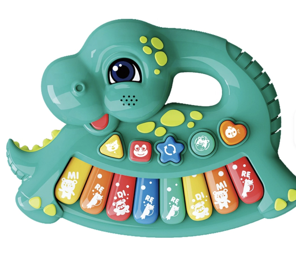 Disponible en modelos atractivos como cocodrilo y elefante, este piano musical es perfecto para niños a partir de los 12 meses. Funciona con 3 pilas AA (no incluidas), permitiendo su uso en cualquier lugar sin cables.