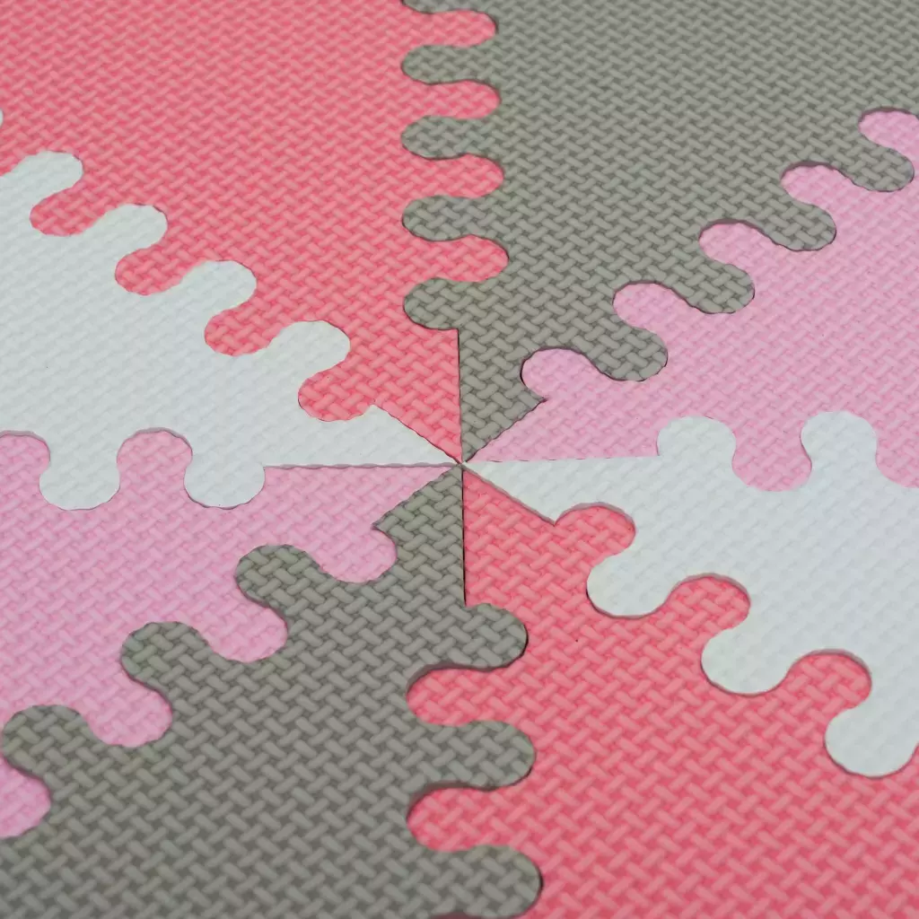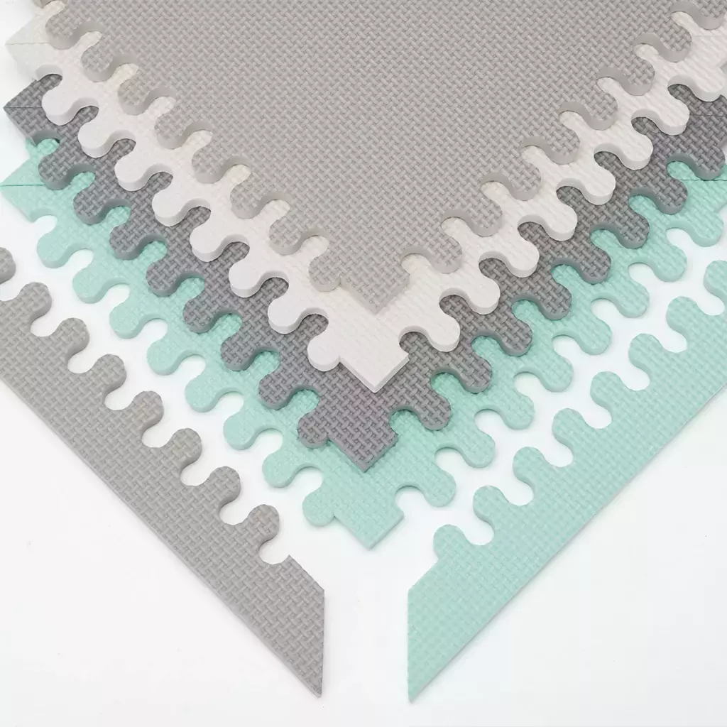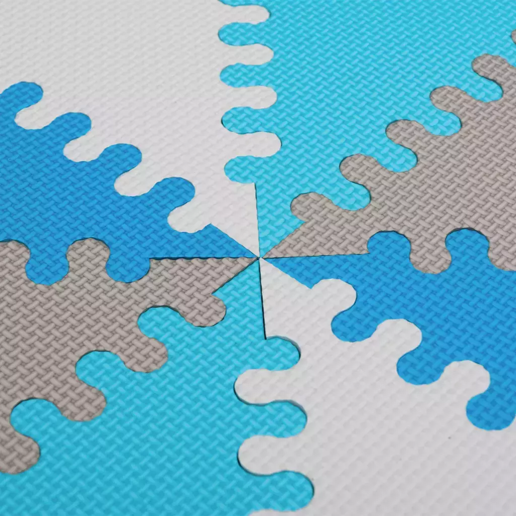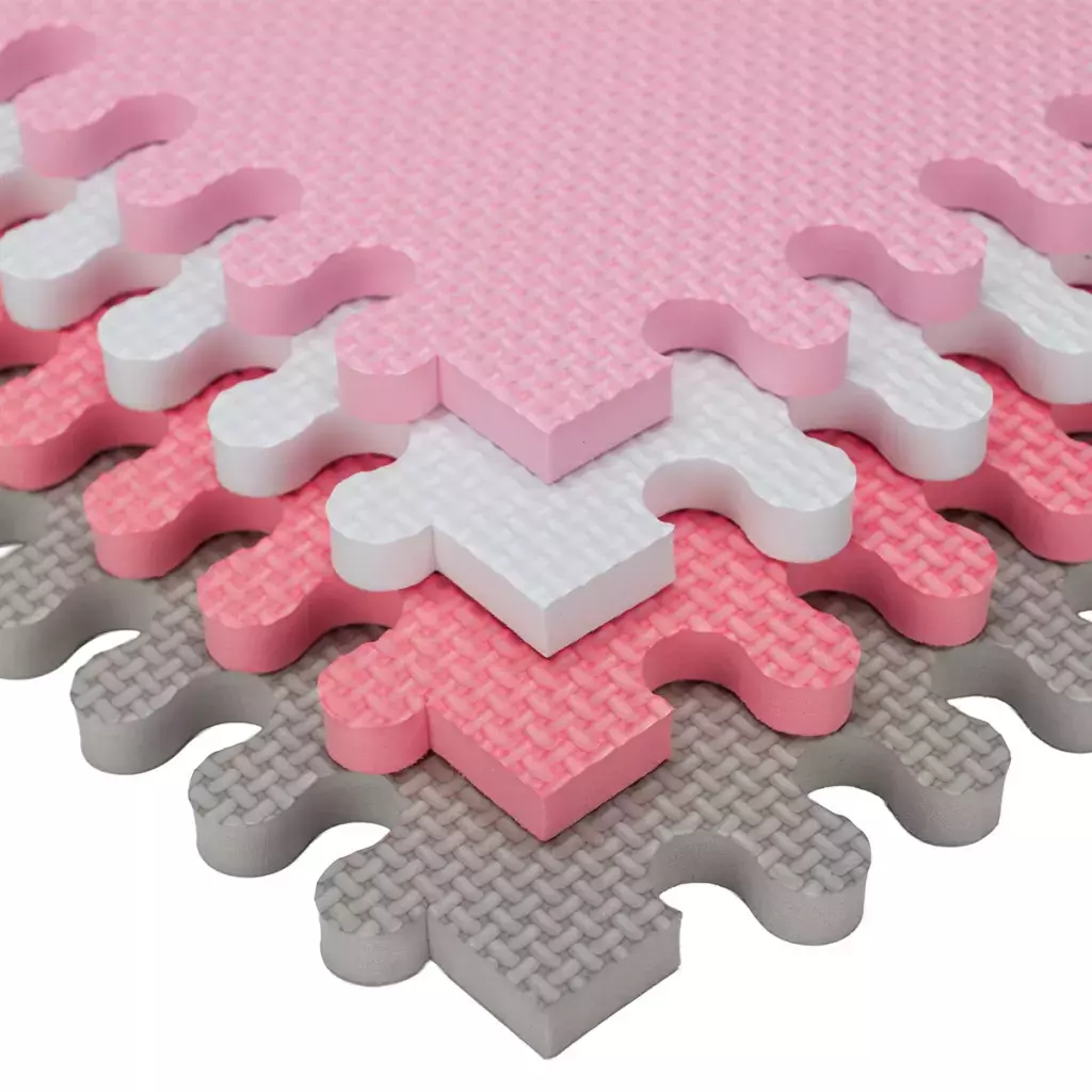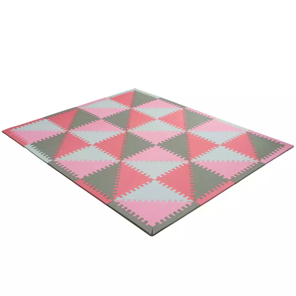 Transformá tu espacio en minutos con este piso de goma EVA estilo nórdico. Su diseño triangular en tonos arena y blanco crea una base segura, acolchada y visualmente armónica para que los más peques jueguen, gateen o exploren sin frío ni golpes.