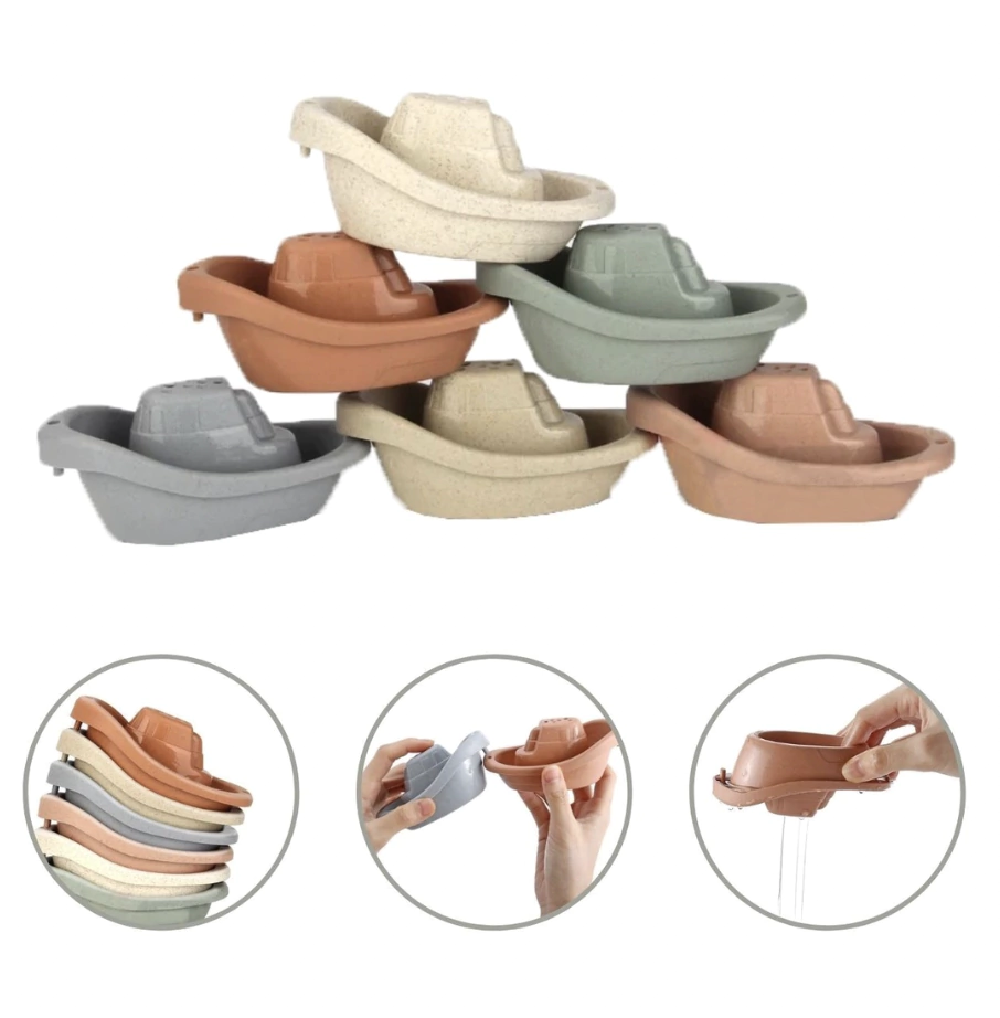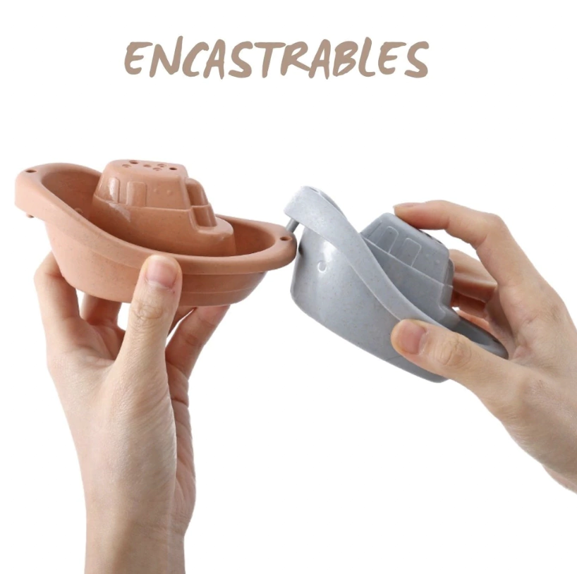Este producto cuenta con un Certificado de Seguridad de Juguetes, garantizando que es libre de ftalatos y seguro para el uso infantil. Los barquitos son apilables y encastrables, lo que fomenta el desarrollo de habilidades motoras mientras los niños juegan.