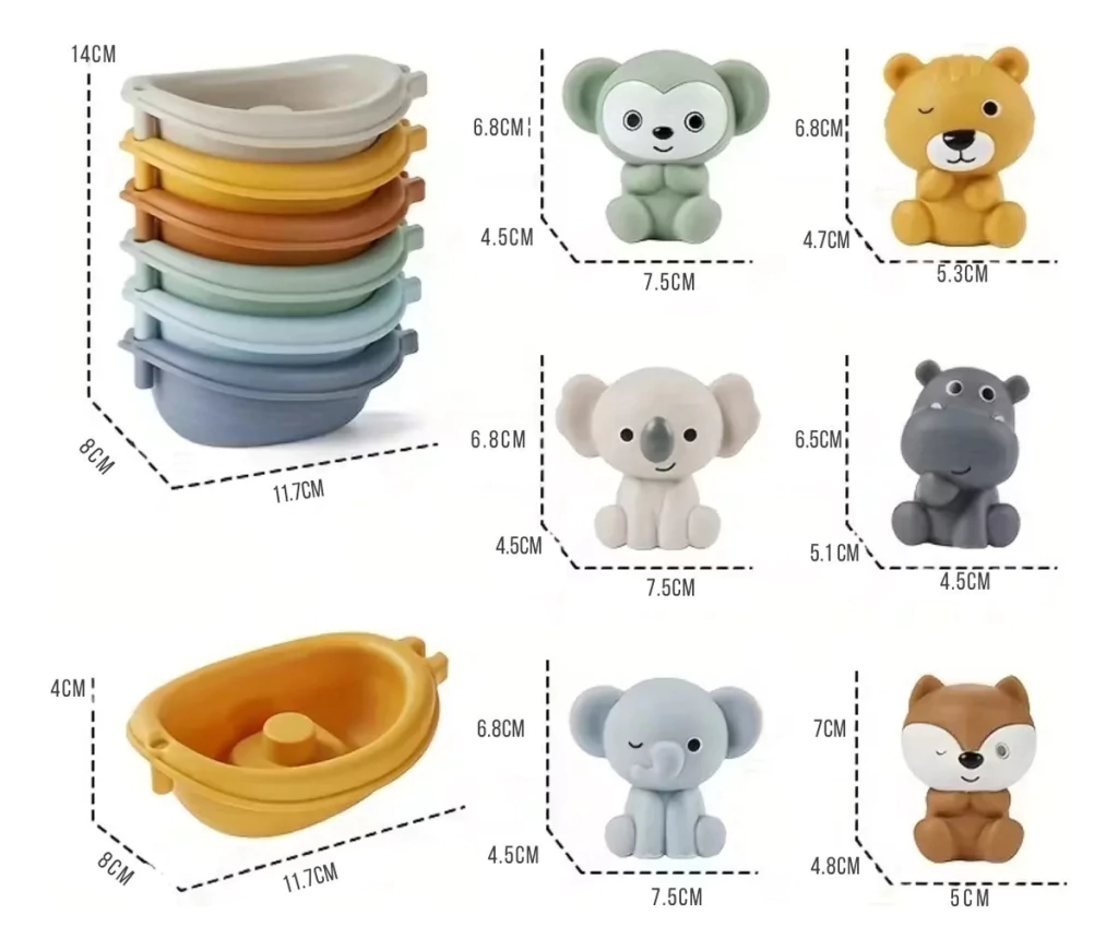 Set de baño 12 piezas: 6 animalitos + 6 barquitos