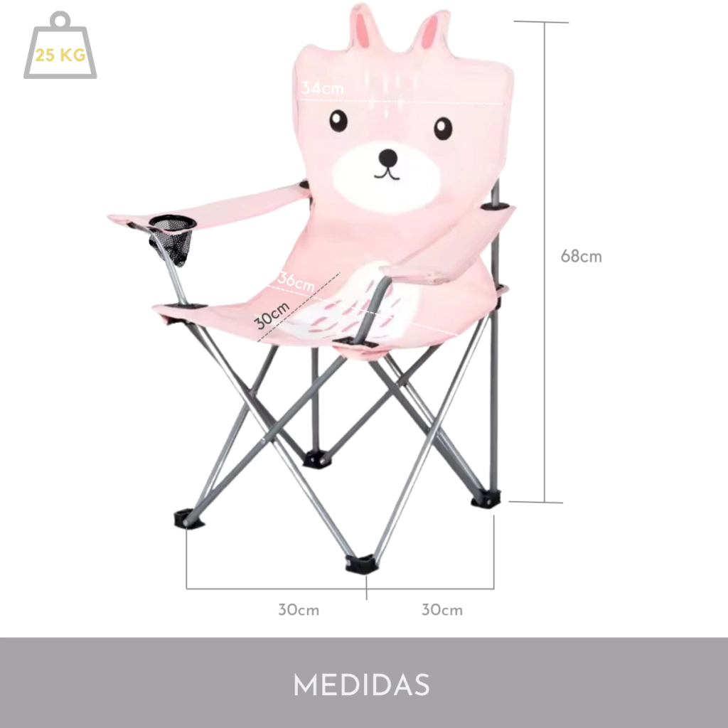 Silla Infantil Plegable Animales Nórdicos C/posavaso + Funda CONEJO